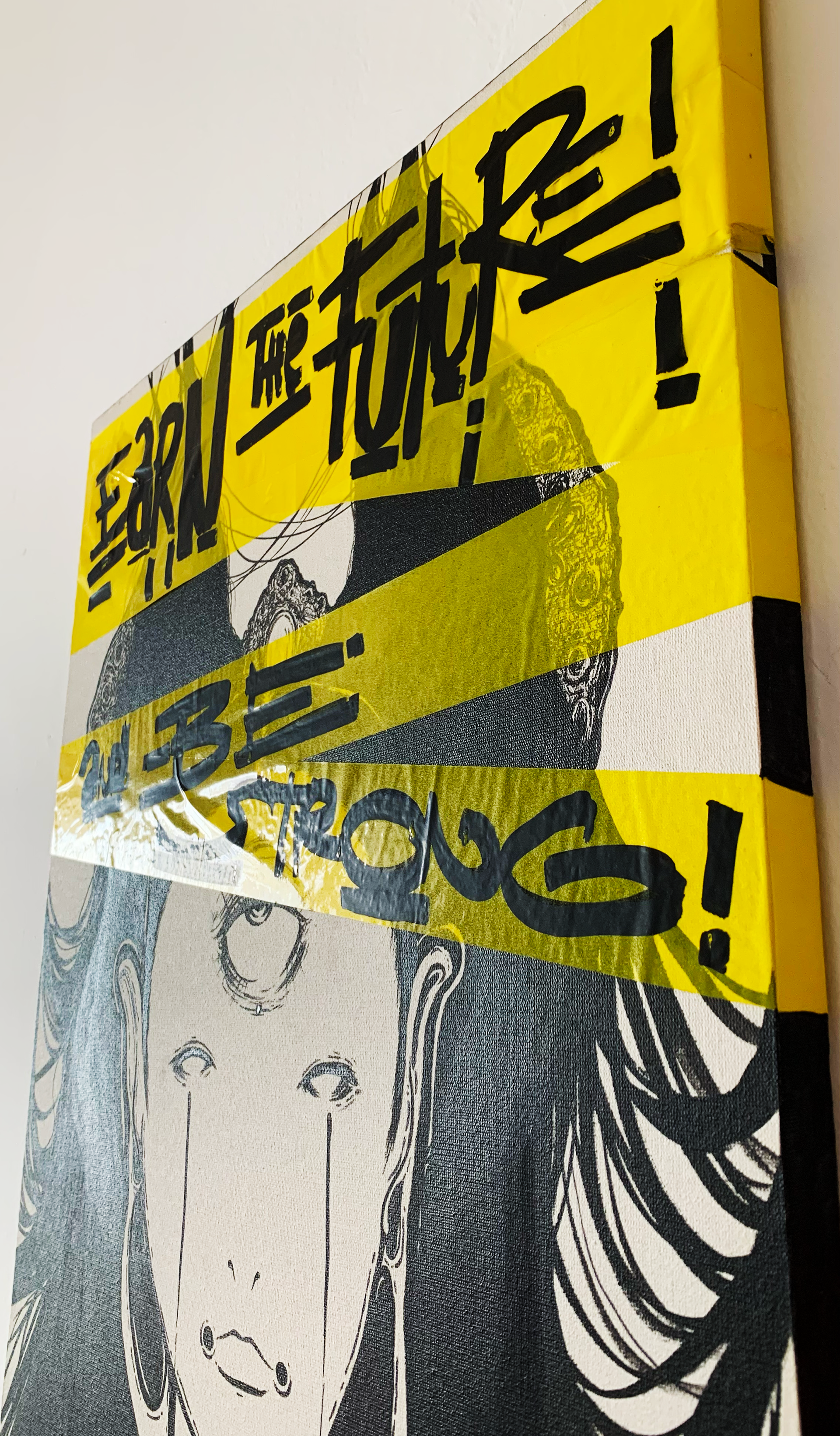 acrylic marker & yellow adhesive tape on canva